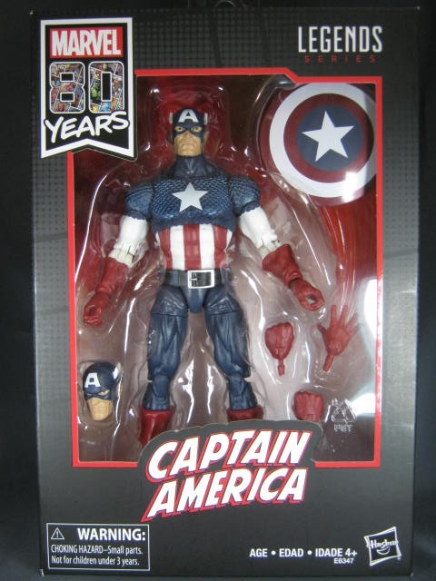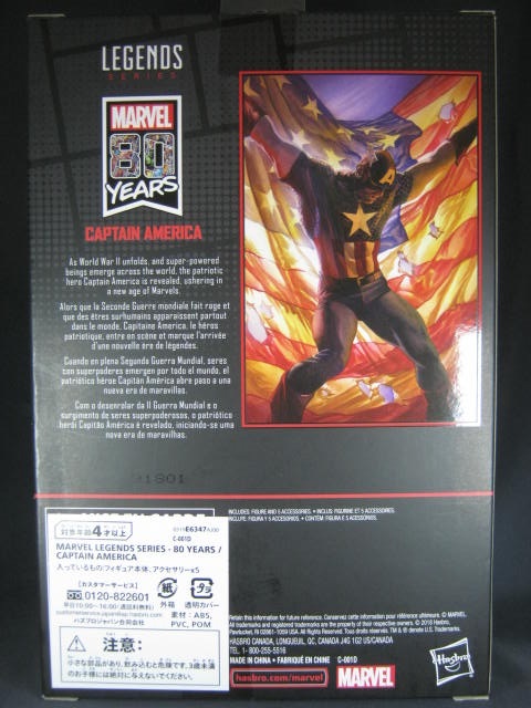 パッケージ通常ラインのマーベルレジェンドは少し歪んだ形状のパッケージですが、80周年記念版は歪みの無い箱状のモノ。MCU10周年シリーズも箱型でしたし、通常ラインから外れる特別なアイテムは箱型にしているのかな。