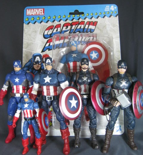 キャプテン色々。同一キャラは1体で十分でしょ、と思っていたのにコミック版もMCU版も複数体集まってしまった・・・。個人的にコミック版はプロテクターとして現代解釈した左端のNOW版が好き。ちなみに初めて買ったのは手前の3.75インチのマーベルユニバース版。