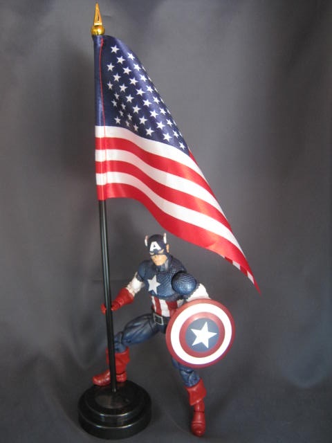 卓上星条旗を調達してきたのでキャプテンに持たせて飾ってます。デフォルトの拳だと握れなかったので、親指と人差し指が繋がっていたところを切り離して広げられるようにして持たせています。