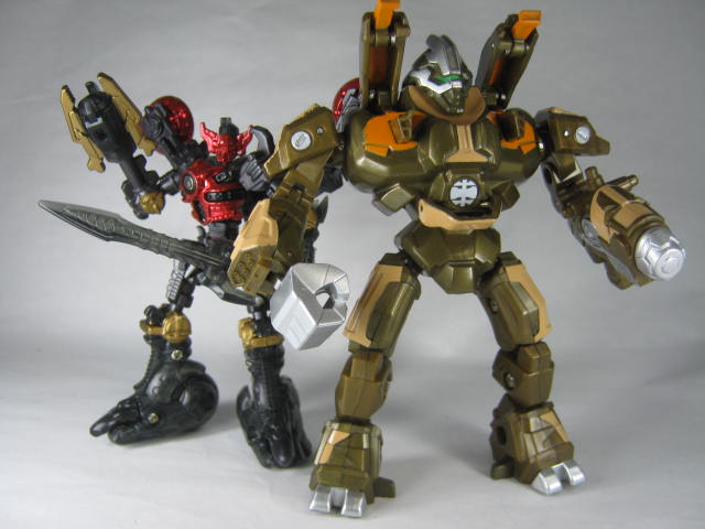 マグネパワーズとの相性は中々。アクロイヤー側の兵士として似合うと思います。アクロイヤーの左腕のマグネットをメクトガンの背中に当ててギミック発動!なんて遊びも出来ますし。左腕の形状もマグネパワーズっぽい。