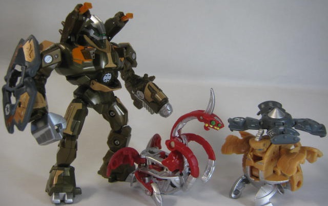 メクトガンは4期前半から登場した新カテゴリーで玩具としては通常の爆丸と同様に磁石に鉄板を当てることでロックが解除されて変形するというモノ。球体に変形しない代わりにアクションフィギュアとして楽しめる爆丸と言いますか。メクトガンには通常のモノよりも一周り大きく、ギミックも増えた豪華版とも言える
