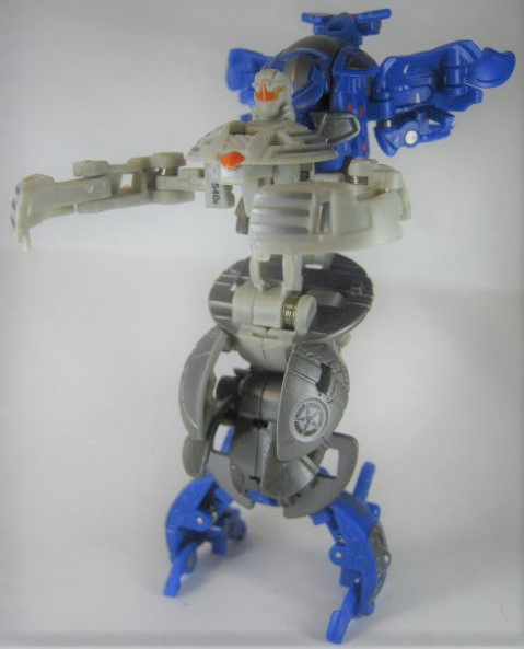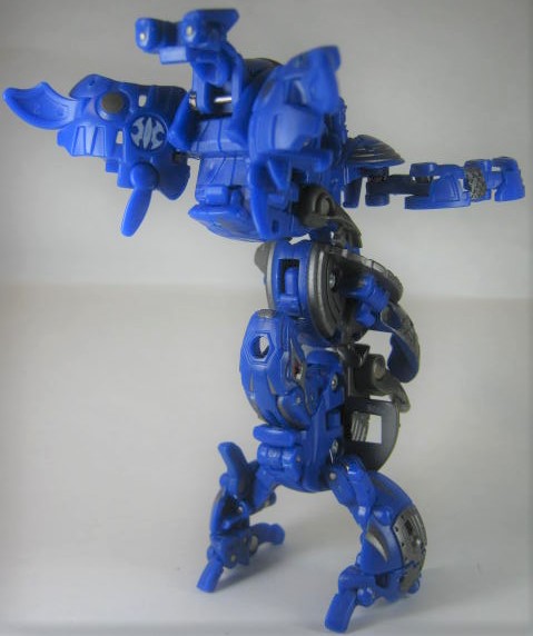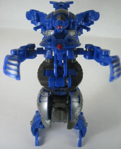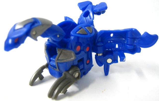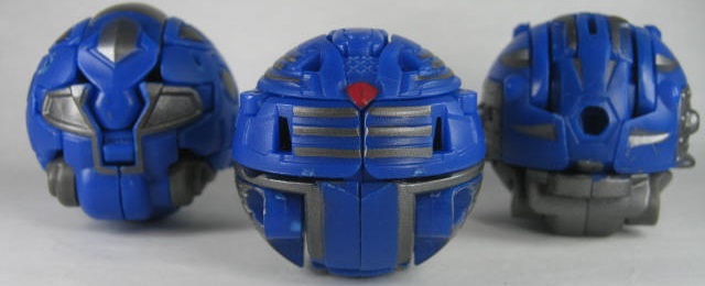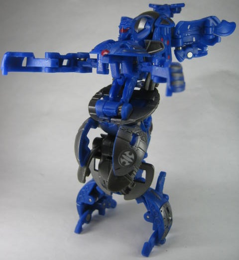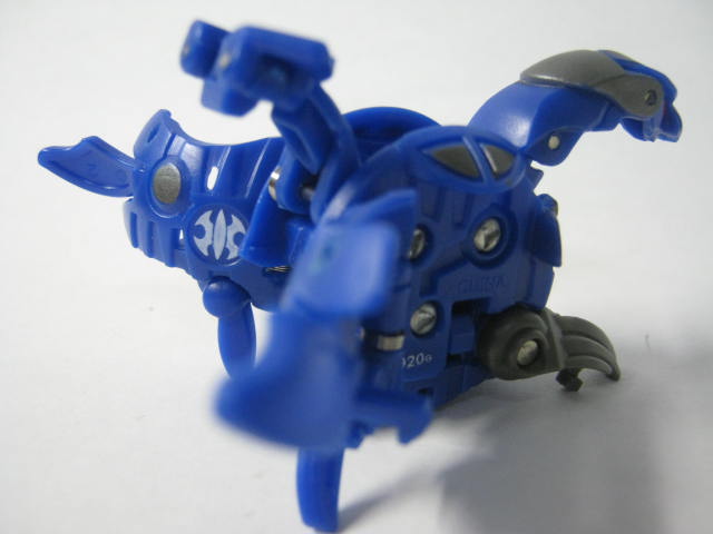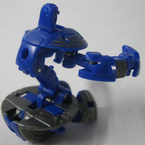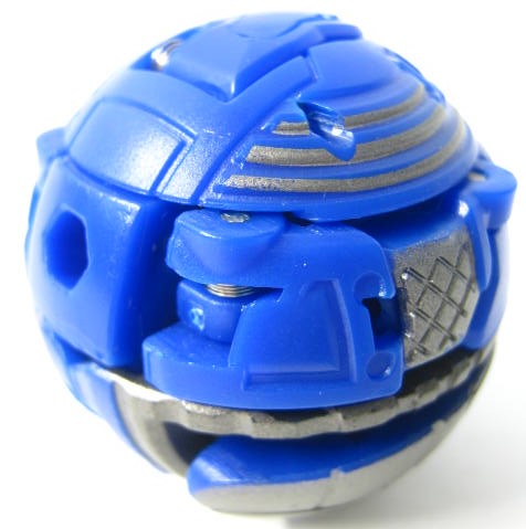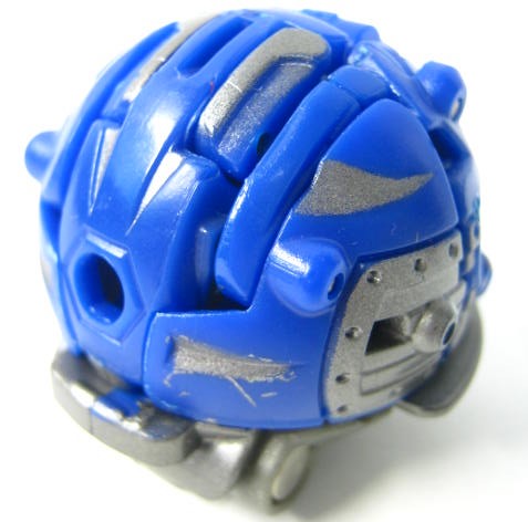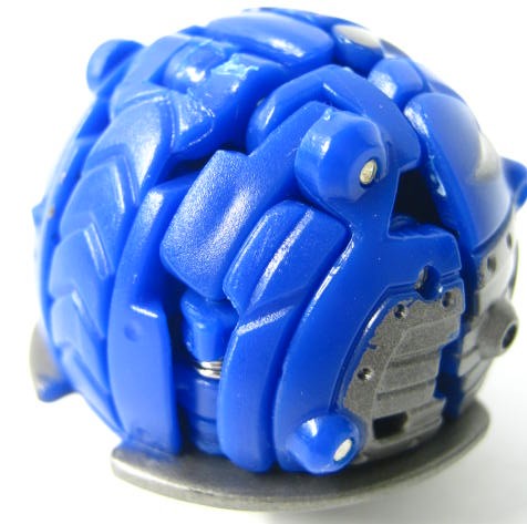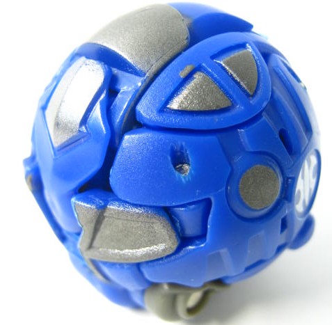 他2体同様に属性は水でカテゴリーはジャンプギミックを搭載した「爆スカイレイダーズ」。コイツだけ3体の中では爆テクに導入されませんでした。その為、合体機能も国内では実現叶わず。前方には大きなコブ、外周にはリング状の出っ張りと転がすのに向いていない形状。実際、転がそうとするとコブが突っかかりそのまま滑ったりします。