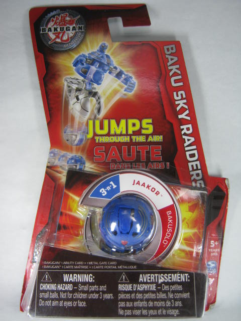 属性は水でカテゴリーはジャンプギミックを搭載した「爆スカイレイダーズ」。コイツと後述のスカイトラスだけは4期爆丸の中で国内でも爆テクシリーズ内で名前を変えて発売していたり。ジャッカーの場合は跳シェイドとして光属性で発売されました。3期辺りから綺麗な球体にならない爆丸が増えていましたが、コイツはちゃんと綺麗な球体になります。