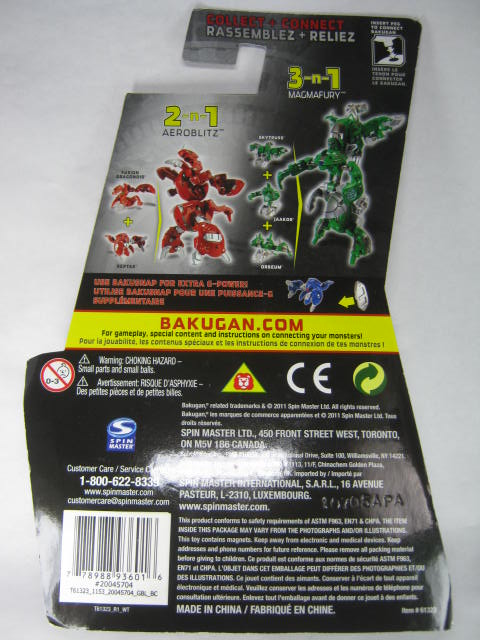 パッケージジャンプギミックを全面的にアピールしたパッケージ。ちゃんと表面は個別仕様になっています。裏面は共通フォーマットで他2体やフュージョンドラゴノイド、リップタックとも共用。それにしても無駄にカクカクした台紙である。
