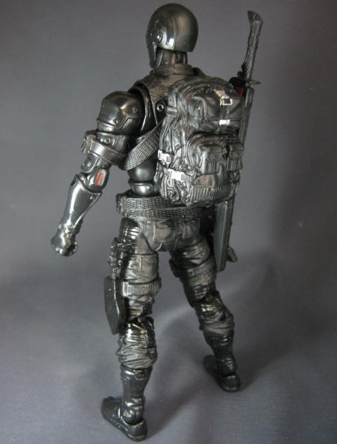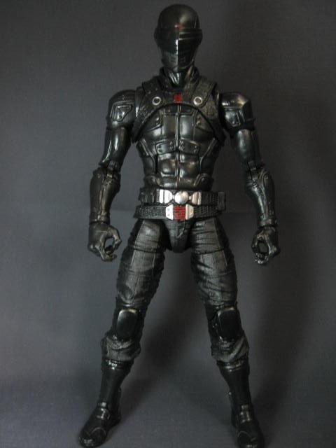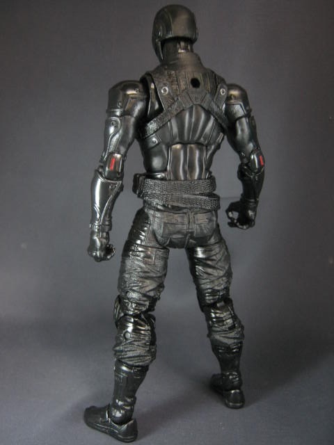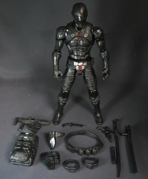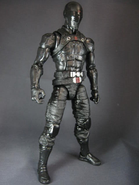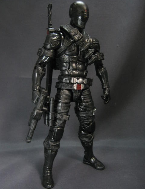 スネークアイズ本体。全身を黒いスーツで包み込んでおり、顔もフルフェイスのヘルメットで覆われたミステリアスな外見。