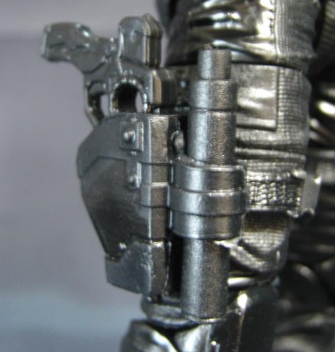 ナイフとピストル、サプレッサーも脚のホルスターに収納可能。ただし、ナイフは何故か最後まで収まらず盛大にはみ出ています。弄っている最中に簡単に外れてしまい、小さいのもあり紛失しそうで怖い。