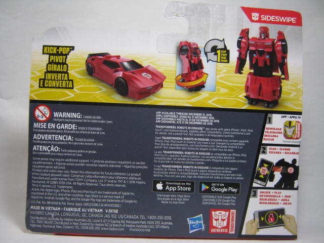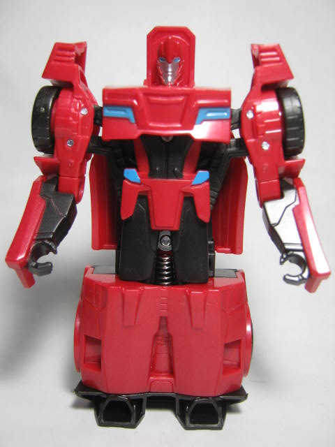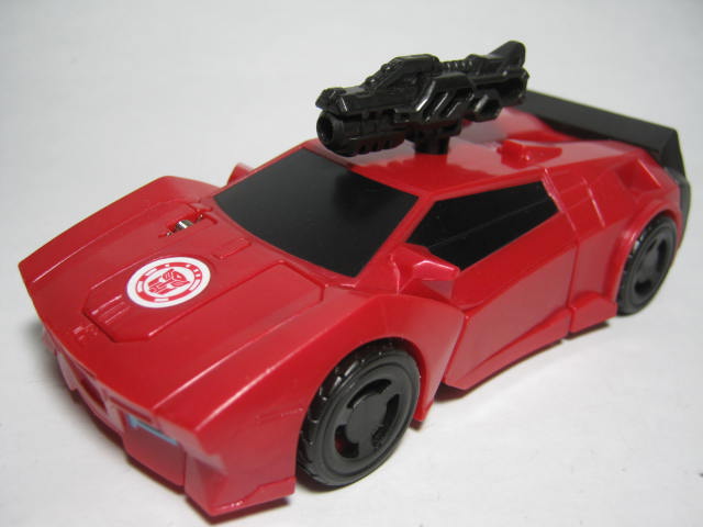 ビークルモード赤いスポーツカーに変形。サイドスワイプのワンステップチェンジャーは国内でも出た所謂ジャキッと変形のモノと、シーズン2期に出たモノが過去にあり、今回で3度目の登場になります。特徴的な