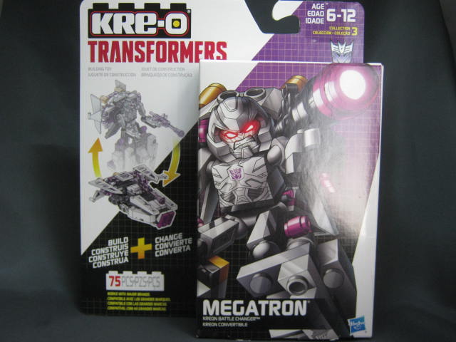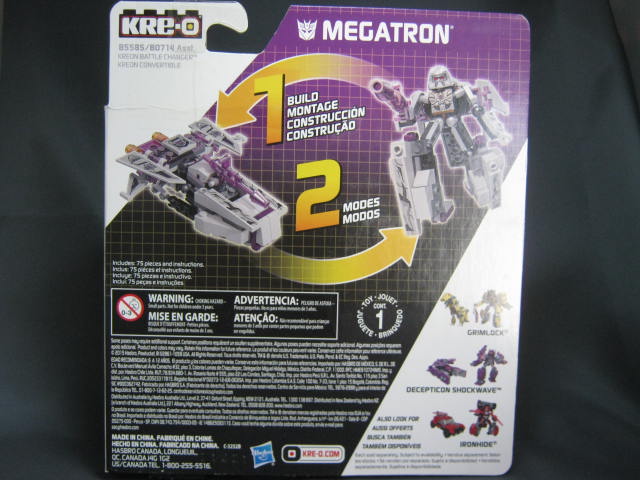 パッケージ台紙に箱が張り付いたような形状。バトルチェンジャーズの中でWAVE3に該当。微妙にパッケージの形状がWAVE1、2のモノとは変わっている様です。メガトロンはオプティマスの対決セットで以前アースモードとして戦車に変形するモノが出ていましたが、今回は最近の影響を受けてかエイリアンシップとして登場。再録のグリムロック、ショックウェーブと新規のアイアンハイドもいますが、この弾は正式に発売する前にKRE-Oの展開が終了、キャンセルされてしまい、一部ディスカウントストア等でこっそりと流通していたモノの様です。ちなみに説明書は相変わらずのデカさ。