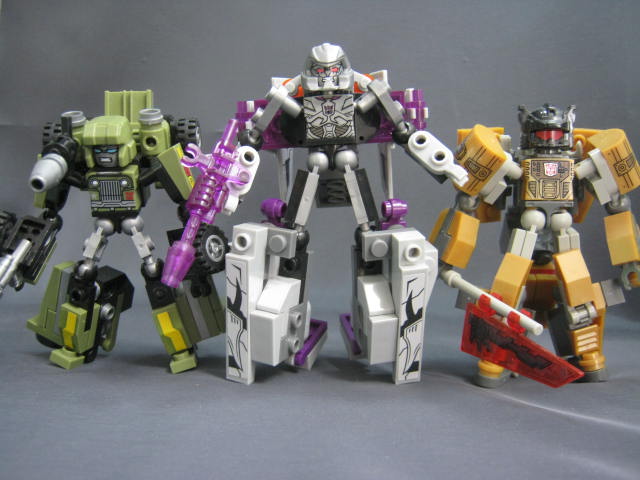 通常サイズのクレオンのメガトロンと集合!この中だとやはりプライム版が一番近いでしょうか。組み換え変形のモノに付属していたクレオンがこうして単体で組み替え無しで変形出来る様になるとは最終的に随分と進化しましたねー。