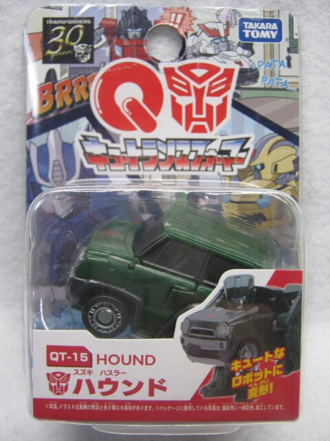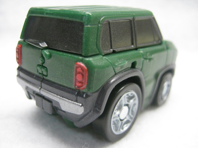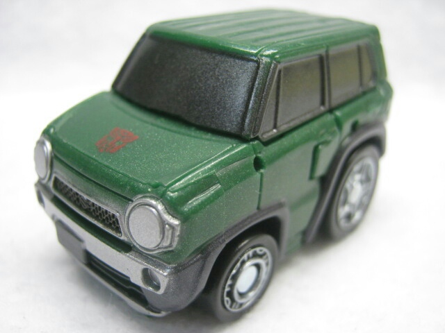 G1の様なジープでは無く、普通のワゴンカーに変形するのがちょっと面白い。チョロQ35周年に合わせたコラボアイテムでもある様ですが、ゼンマイは未搭載なので