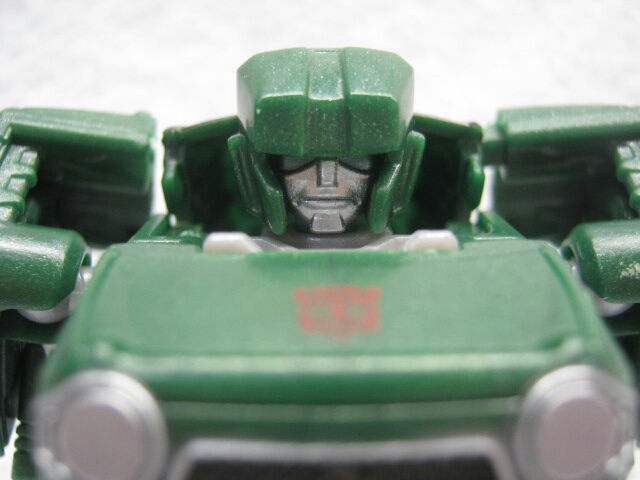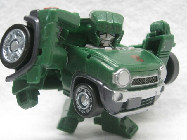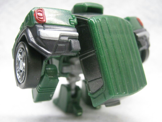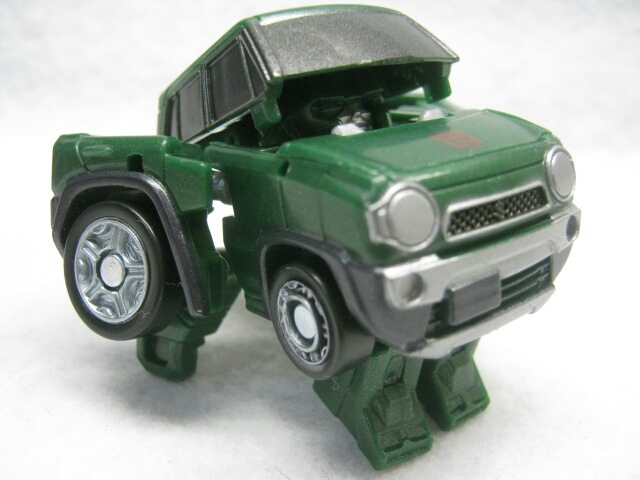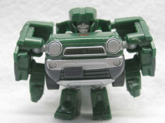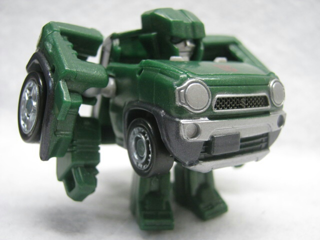 かわいいと言うかずんぐりなロボットモード。デザインは実写よりもG1寄り。デフォルメされた上に車種が変わった為、雰囲気は大幅に変わっていますが手足にはG1版を意識したモールドがあるので結構ハウンドっぽさは残っています。