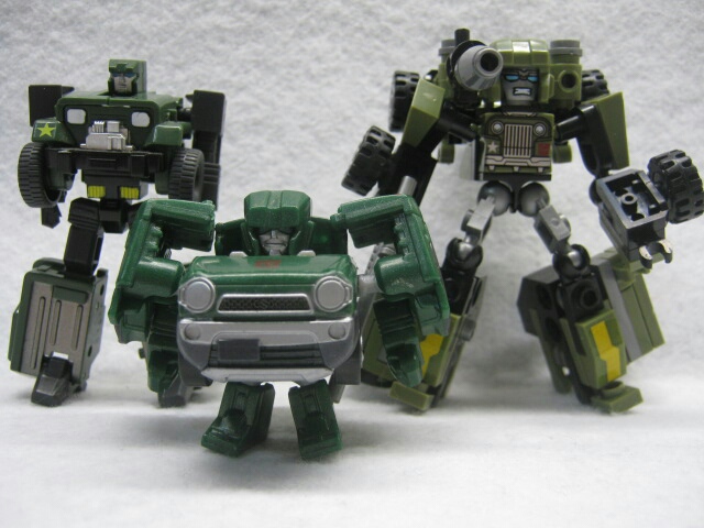 バトルチェンジャーズ版とEZコレクション版のハウンドと。バトルチェンジャーズも一応デフォルメみたいなモノかな?どちらも実写版の影響からの参戦故か、双方G1似だけど表情が険しいのが特徴。
