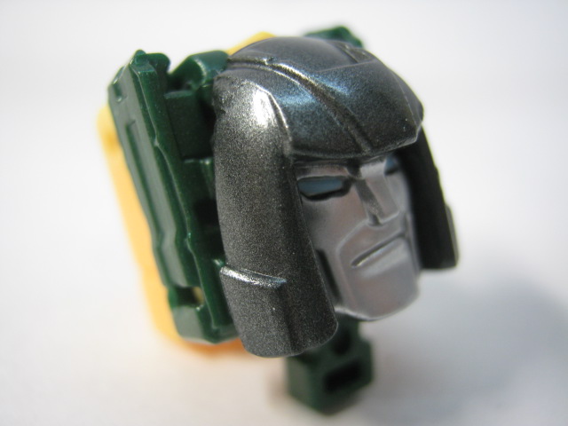 ブローン:ヘッドモードタイタンマスターはタイタンズリターンシリーズのTFの頭部に変形します。ブローンはG1玩具風デザインから打って変わってアニメ版デザインの頭部に変形。ドーム状のガンメタ頭部と銀の顏等、見た目はバッチリ、アニメ版デザインになっています。