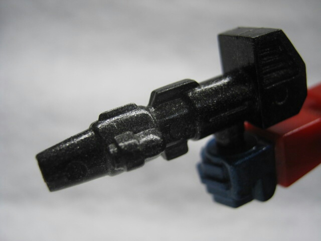 武器のコンボイガン。確か、ランナーに付いてるモノを切り取る必要があったと思います。形状的にアニメより玩具のデザインを踏襲している様に見えますね。