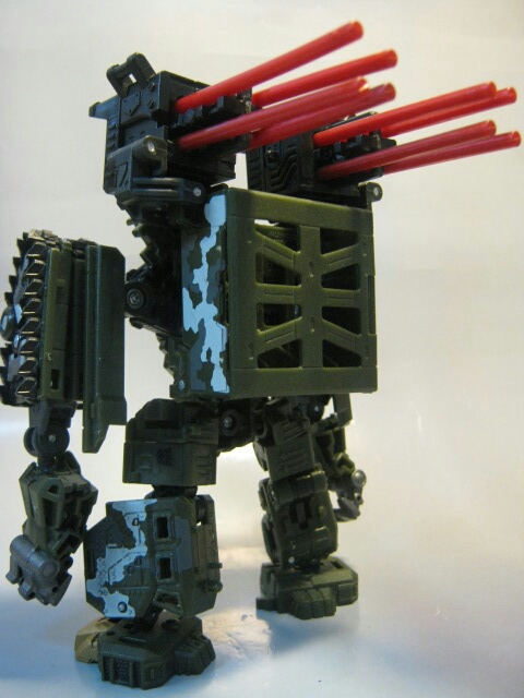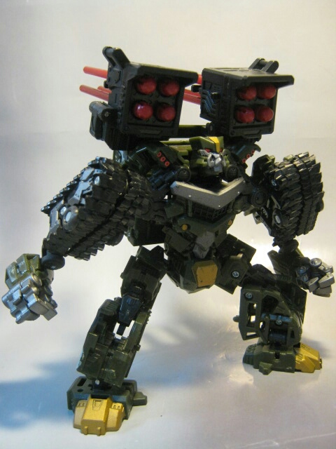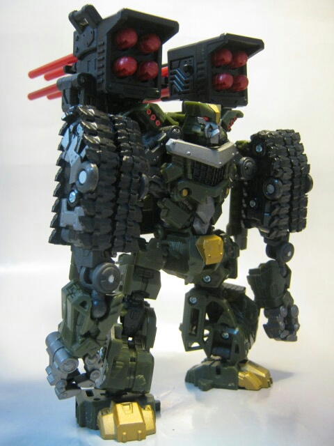 ミサイルポットを背中に背負い、猫背で短足のドッシリとしたボディがパワフル。キャタピラを畳む事で出来上がる肩がユニークですね。ミサイルが後ろにながーく飛び出ていますが、玩具っぽさがあり結構好きです。
