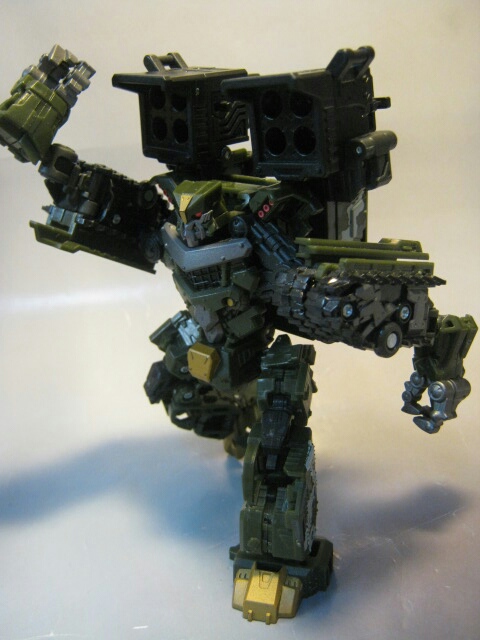 キャタピラを曲げて肩にする変形や、重みのあるカラーリングと体型によりドッシリとした感じが好みの一体です。玩具オリジナルキャラでも、ちゃんと一体一体のこだわりが感じられるがTFの良さの一つだと思います。