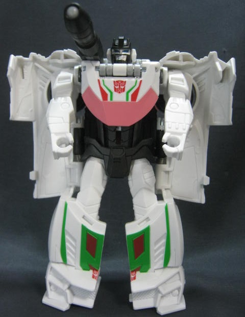 ロボットモードキャノンが右肩にあるのでいつもと違って左側から。コチラもG1版を強く意識した外見。胸にあるフロントウィンドはダミーでビークルモード時のモノは背中に回されています。
