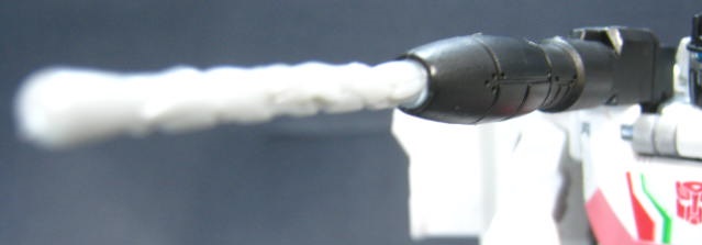 肩のキャノンは劇中では装備しておらず、玩具オリジナル要素の様ですがG1版が装備していたマグネット砲を強く意識しているかと。