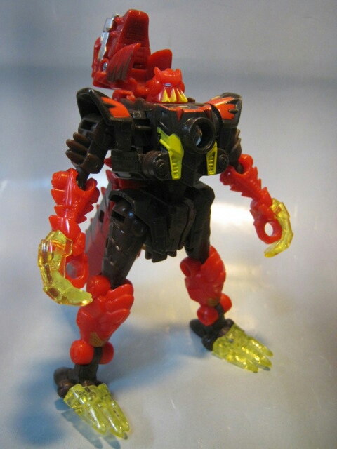 デストロン側のエネルゴンを採取するTF、テラーコンの一種。大量に存在します。通常カラーは劇中にも登場し「はおーん」と鳴きながら暴れ回ってましたがマグマタイプは玩具オリジナルとなっています。設定も通常版と同じ様でイマイチどう扱えばわかりませんがマグマタイプなので熱に強いとか赤いから三倍早いとか好きに遊ぼうと思います。