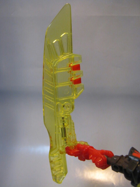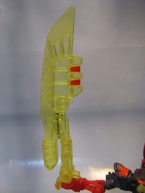 合体させるとエネルゴンウェポン、エナジーブレードに。大型の剣になります。コレなら爪に干渉する心配も無し。