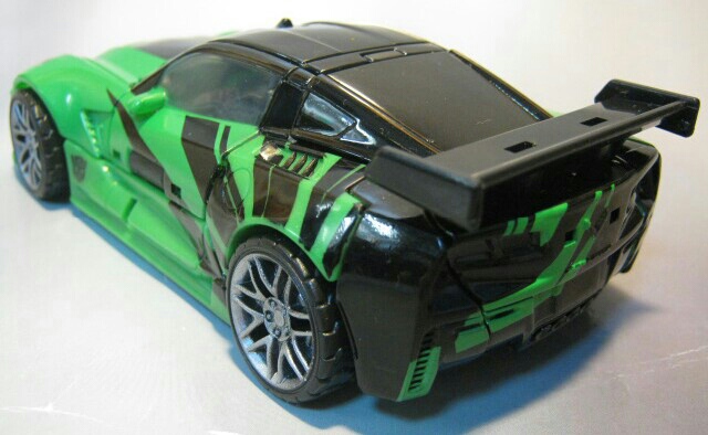 緑のシボレーC7コルベットスティングレイに変形。左側の黒の縞模様が特徴的。窓やライトはクリアパーツになっています。