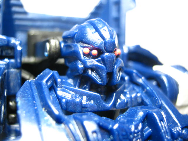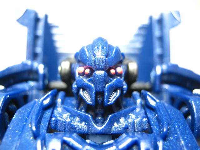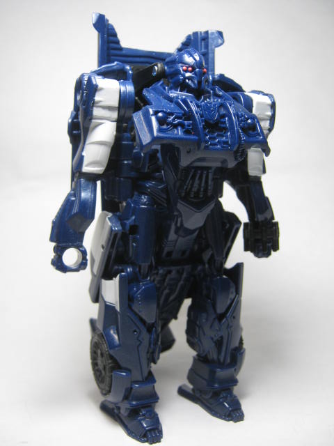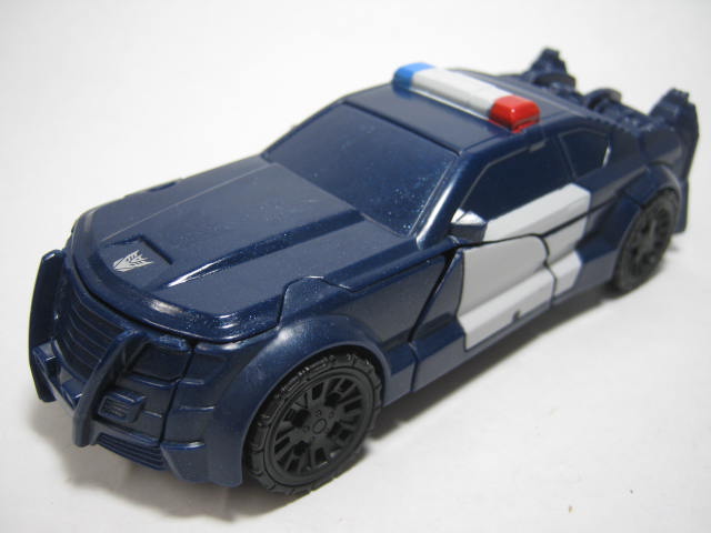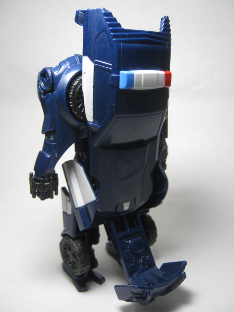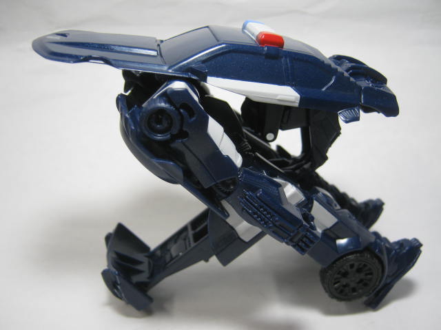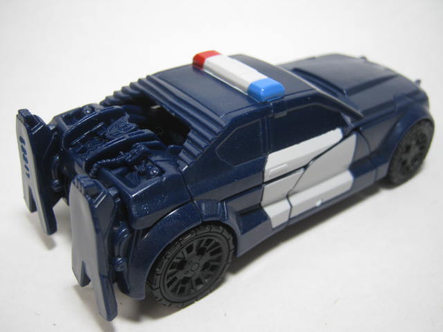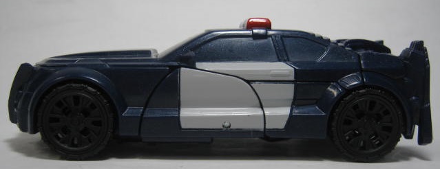 パトカーに変形。デラックスクラス版同様に劇中とは違う、オリジナルデザインのモノになっています。塗装の少なさが非常に目立ち。窓は良いとしてもライトの類まで未塗装なのは寂しい所。パトランプが塗装されているのは良いのですが・・・。青みががったボディですが、コレは劇中と同様。映画ではもうちょっおメタリックブルーって感じでしたが。