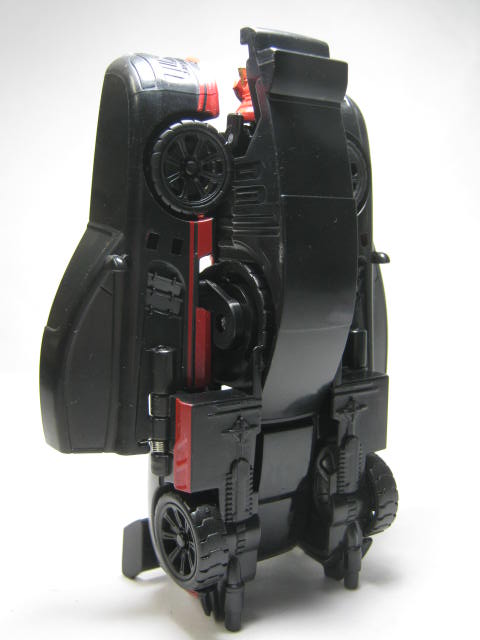 タイニーターボチェンジャー版とビークルの形状が似ていますし、サブライン内では非ライセンスビークルでも「同じキャラのビークルモード」である事を伝える為か形状を似せようとしている様ですね。ランプの類が未塗装なので真っ黒なのが勿体ない。