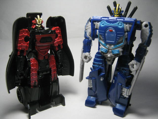 ロストエイジ版と比較。身長はロストエイジ版の方が大きいですね。ロストエイジ版のバタフライナイフの様な変形パターンも傑作でしたが、今回のスピードチェンジ版もなかなか。