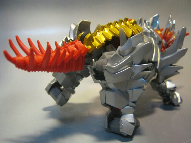 膝が二重関節だったり、肩、脚はボールジョイントを使用するなど可動はそれなりに。肩の飾りがちょっと邪魔ですが。個体差か、私のスラッグの頭部は可動させても元の位置に戻ってしまいます。肩の可動の際、前足のロックが良く外れてパーツがズレてしまうのがちょっと気になりました。