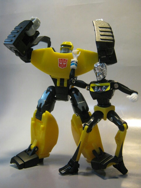 身近なモノがロボットに変形するのってミクロマンのミクロチェンジシリーズっぽいよね!って事でミクロマンのブラッキーと。色も似てるし結構マッチしてます。