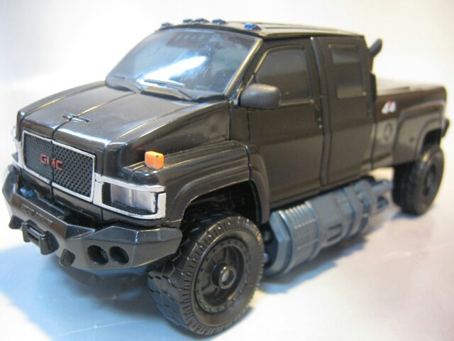 GMのトップキックC4500に変形。パワフルなボディとツヤのあるブラックが力強さを感じさせて格好いい!窓はクリアパーツです。