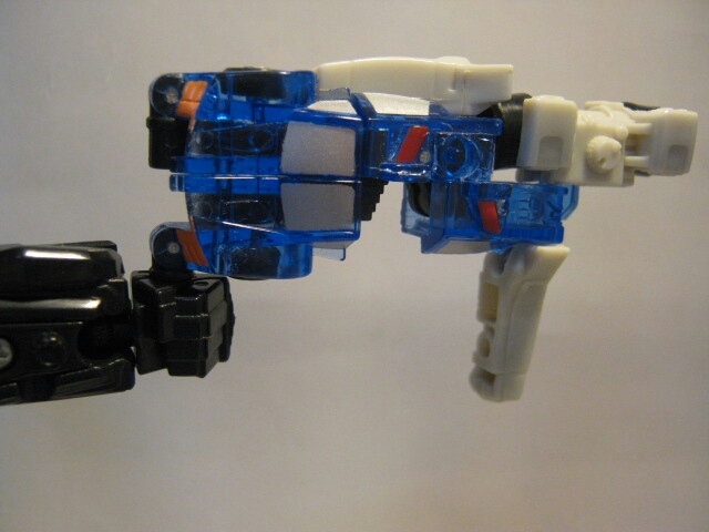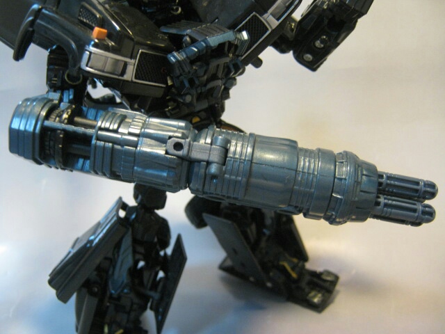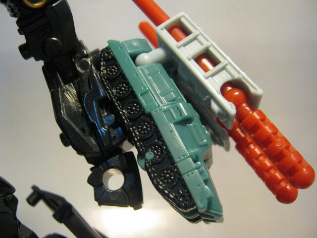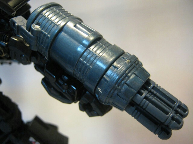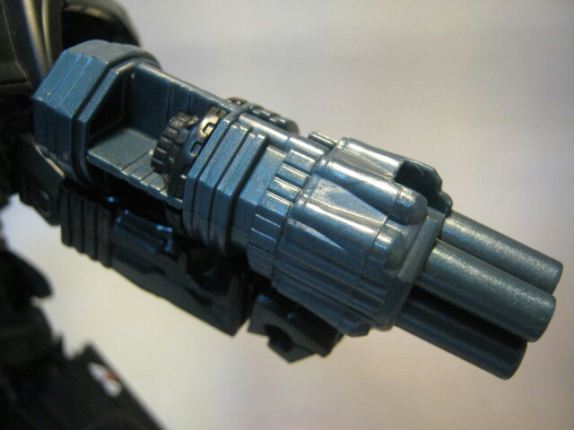 左腕のキャノンを外して右腕に付ける事により合体、ミサイル発射ギミックが解除されます。黒いトリガーをスライドさせる事で押し出し式でミサイルが発射されます。長くてなかなか迫力がありますね。コミック「SAGA OF THE ALLSPARK 」では劇中デザインのキャノンを玩具と同じ様に連結し、巨大な手持ち武器として扱っていました。