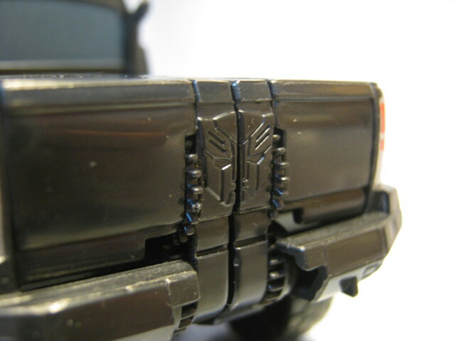 ビークル後部にはオートボットのエンブレムが。劇中モデルでも立体的だったエンブレムをプリントではなくちゃんとモールドで表してあるのが嬉しいポイント。