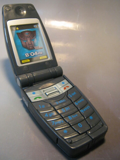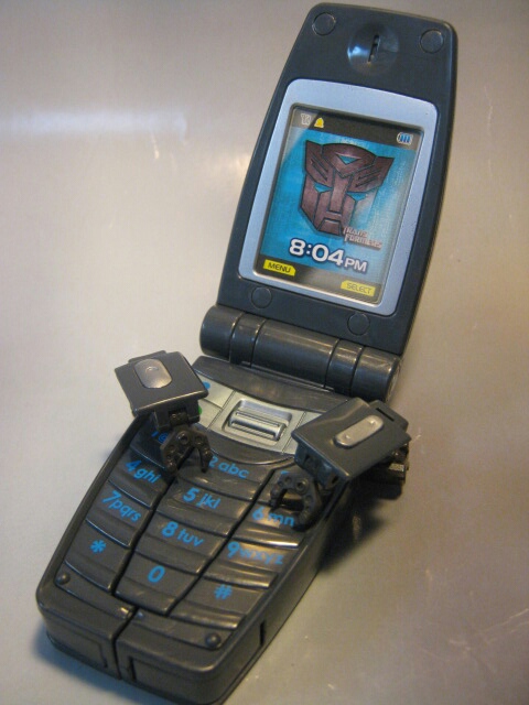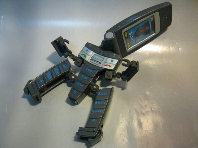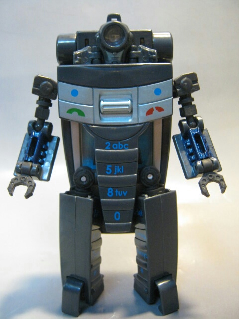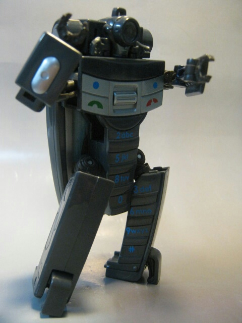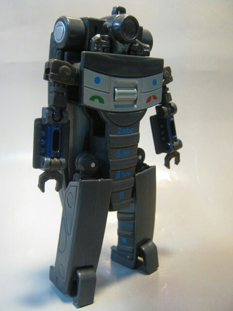 大胆なスタイル。胴体も各部にキーがそのまた配置されており、携帯電話から変形したのが一目で解ります。左右のパネルが開いて腕になるのがお気に入り