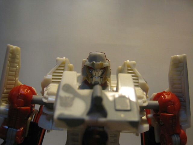 グレーの頭部に金のペイントがお気に入り。形がメガトロンっぽい事から、昔はメガトロンの代わりにして遊んでいたりしていました。