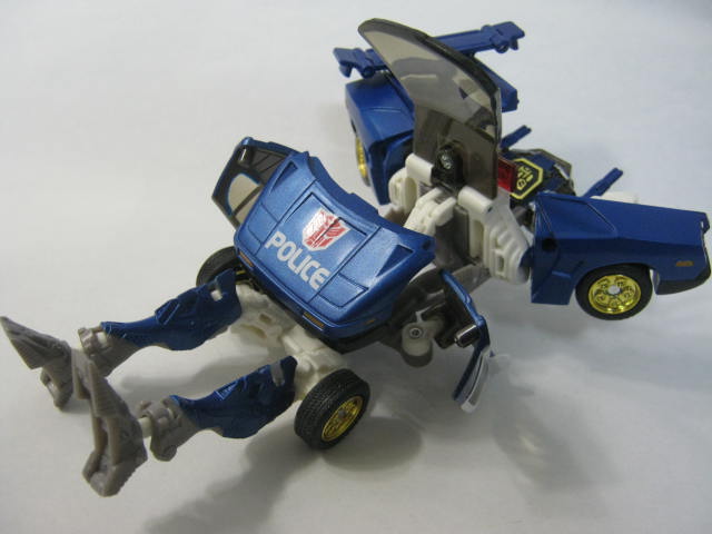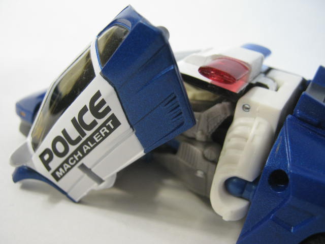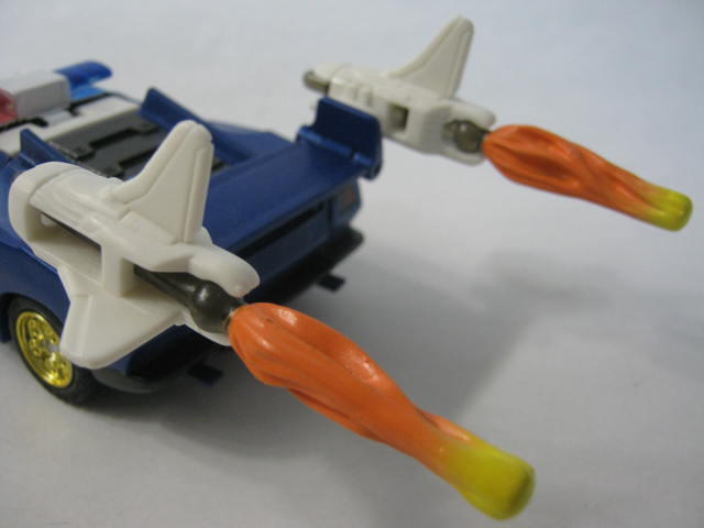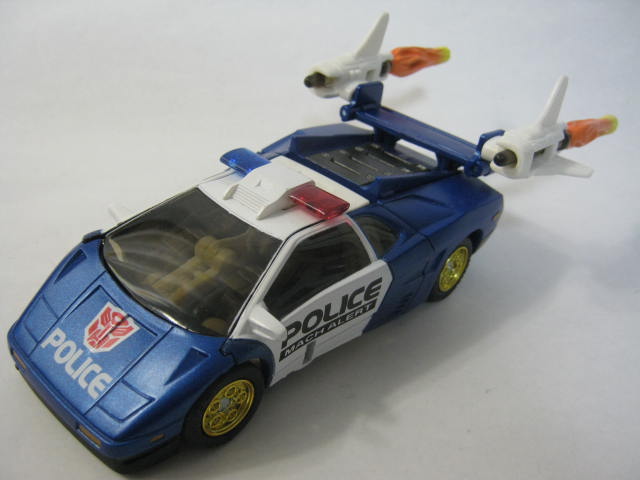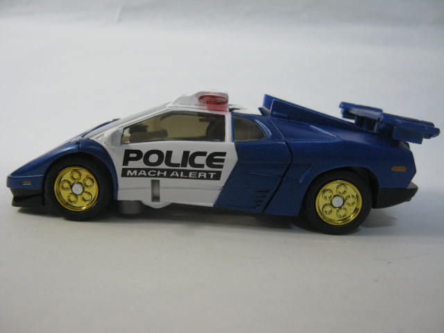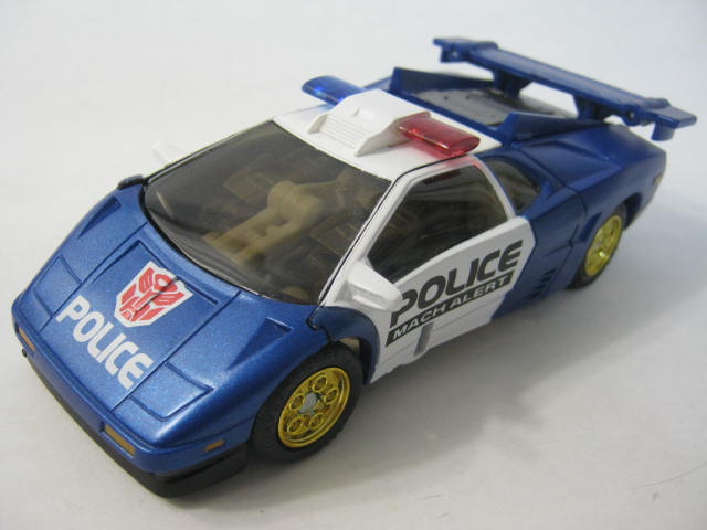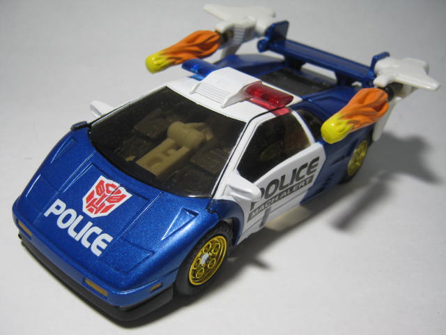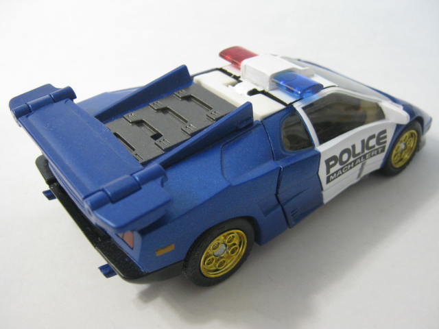 ビークルモードカウンタック風のアメリカンポリスカーに変形。タイヤはゴム製、ホイールはメッキと