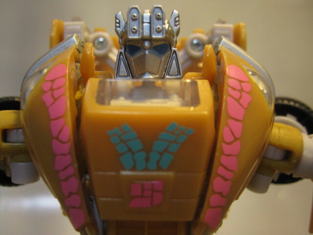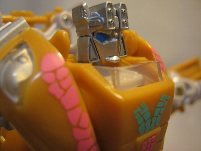 銀一色でG2版にかなり似ています。ボックスセットのマシンウォーズホイストと共用の際、額に凹凸がありますがかなりエレクトロン優先の造形です。