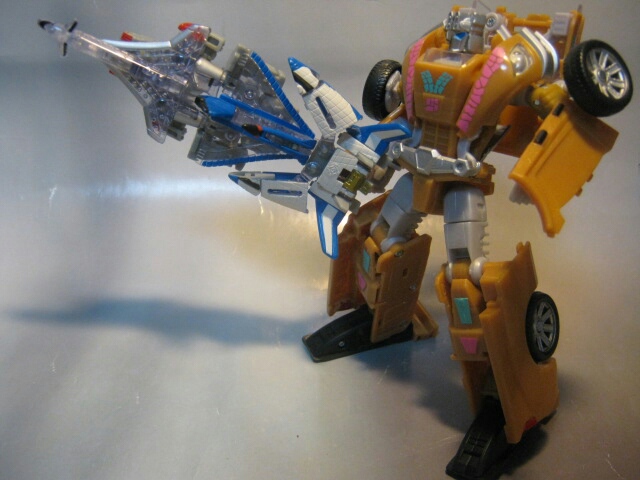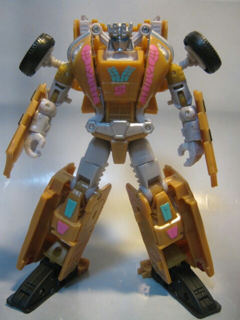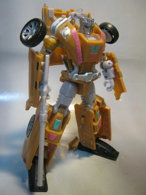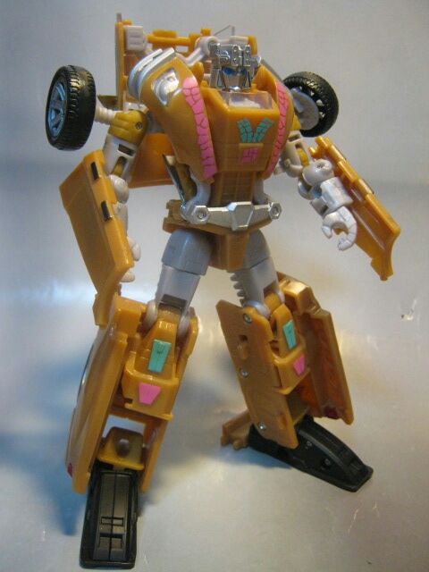 カップのリデコなのにかなり様になっているエレクトロン。ボットコン限定品と言う事でなかなか手を出せずにいましたが、思いきって買ってみました。やはり通常のTFと比べて高いので、割高感がありますが初めて触る型だったのもあり結構満足しています。私は元々、G2シリーズそのものやギミック等が好きだったのでG2カラーとかG2キャラを意識したリデコ等の見た目だけを再現したモノはあまり好きではありませんでした。しかし、エレクトロンは破損しやすいG2版と違い気軽に弄る事が出来るし、胴体の回転と腰の伸縮変形等が面白い型なのもあり、かなり気に入っています。