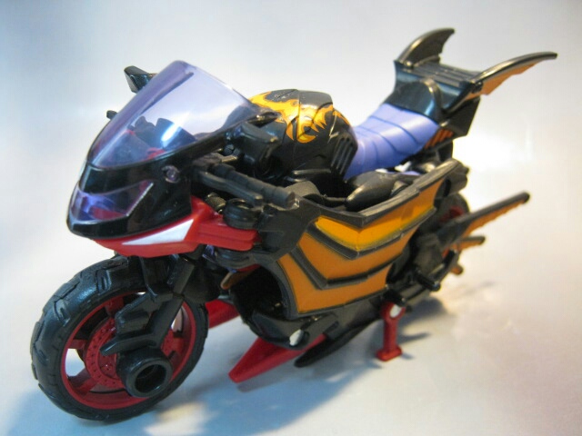 魚のヒレの様なモールドとその名の通り炎の様な模様が特徴的。スタンドを起こしてビークルモードでも立たせられます
