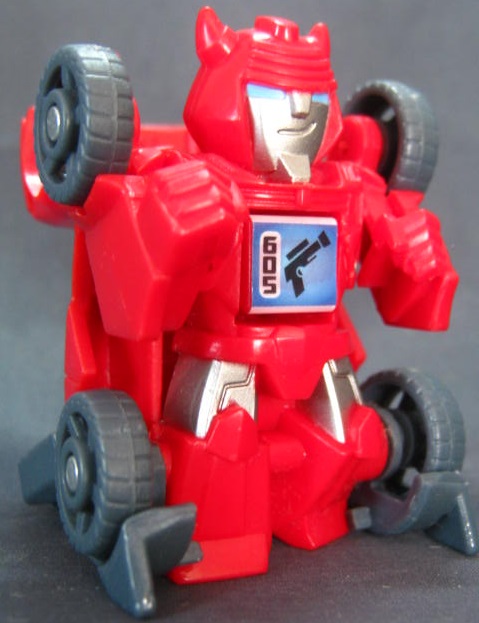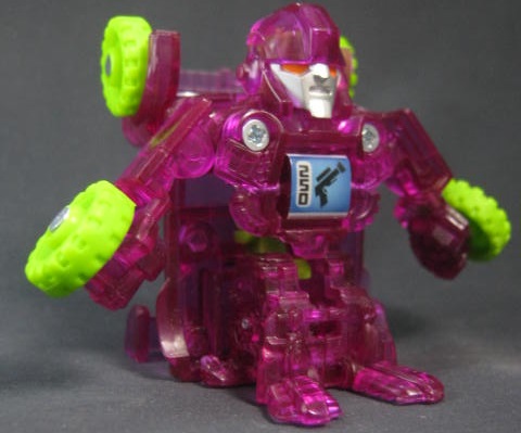 サイバートロン(ギャラクシーフォース)からまさかの登場。日本ではインチアップといった方がなじみ深いでしょうか。クリアカラーのスーパーボッツ仕様で登場。シリーズ1の型なので特に特殊なギミックはありませんが、特殊なギミック持ちの3種と区別する為に、ブリッツショットという型名が付きました。