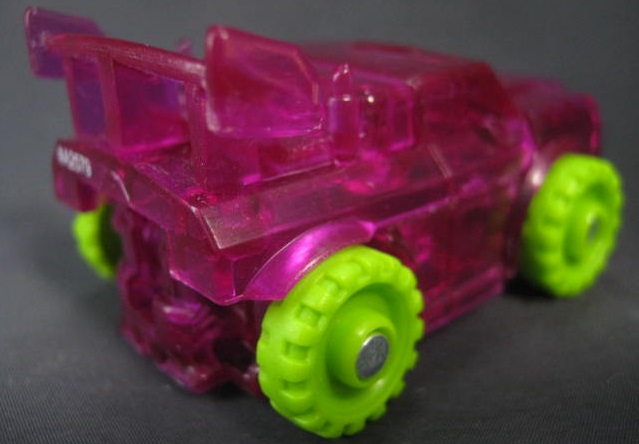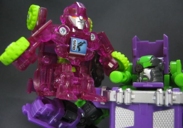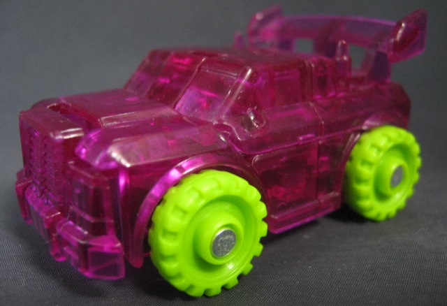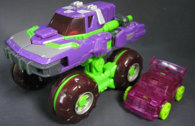 ビークルモード独特なカラーリングのクリアパープルのオフロードカーに変形。シリーズ1のアイアンハイドのリカラー。