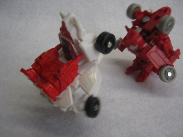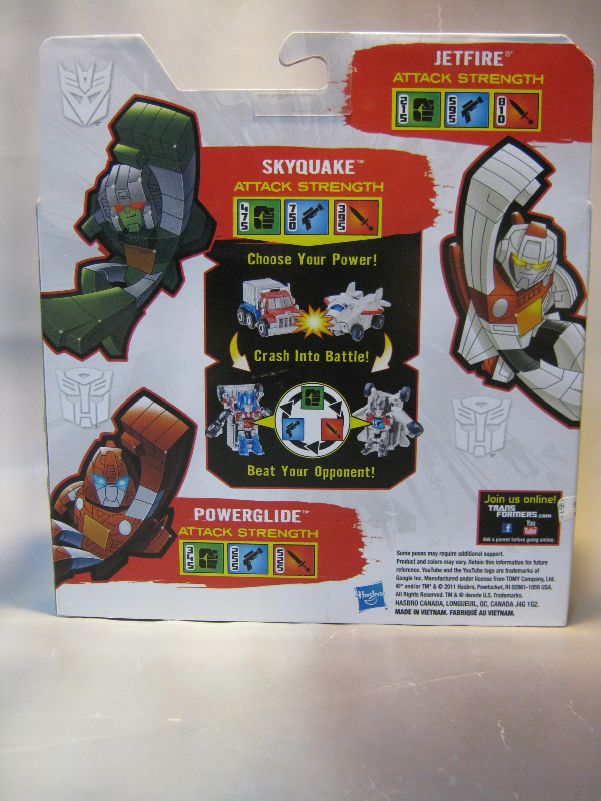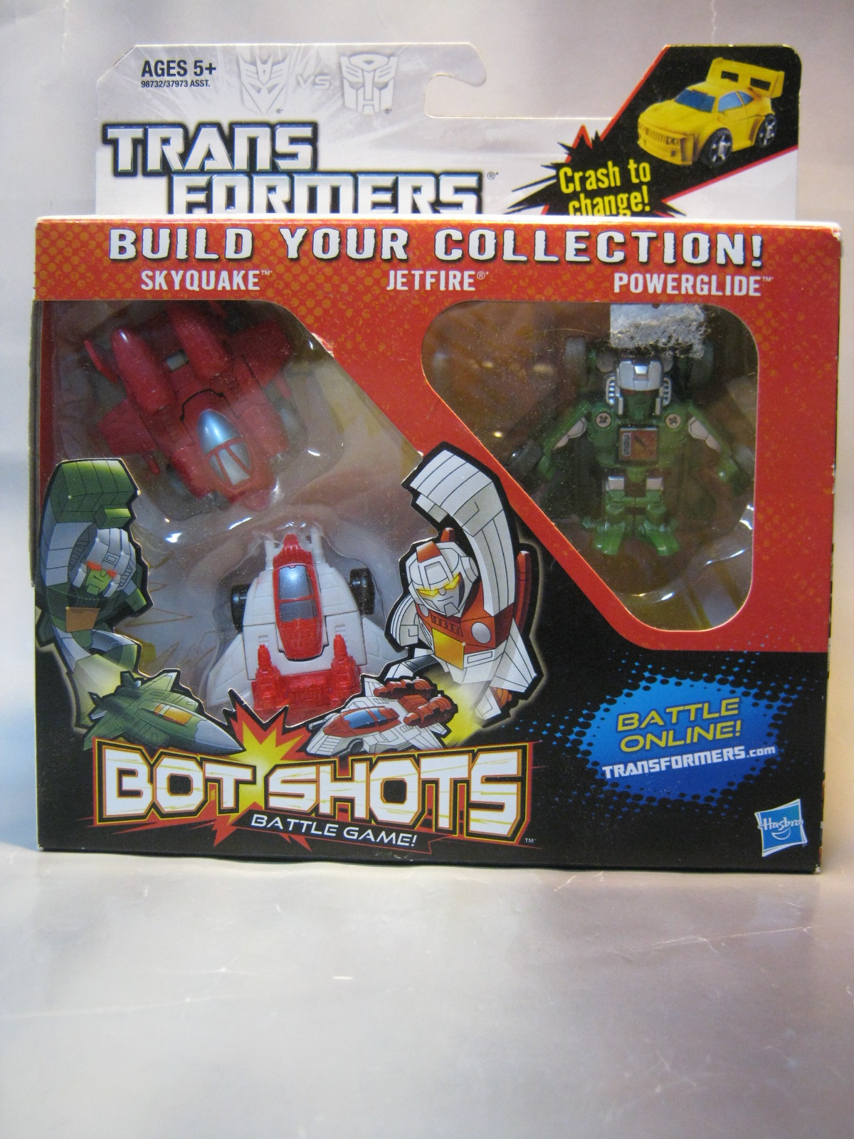 二体ではなく三体セットなところがなんだかスターターというかデッキっぽくてワクワクさせられます。パワーグライド目当てで買ったセットでしたがスカイクエイクとG1玩具風カラーのジェットファイヤーも良い感じでした。
