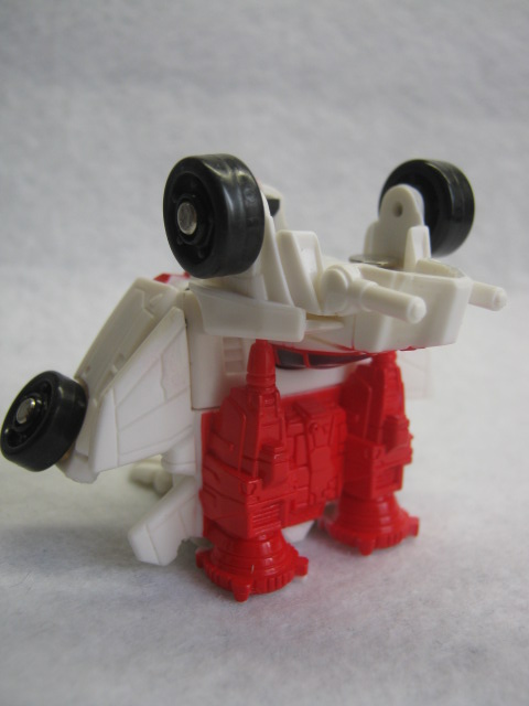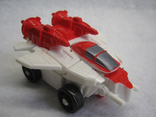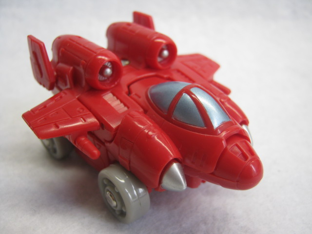 デフォルメタイプの戦闘機に変形。G1同様に巨大なブースターを装備しています。