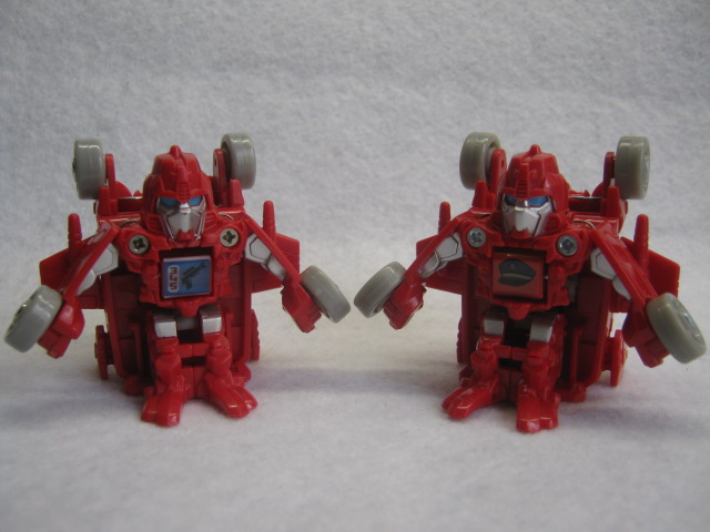 ビークール版(右)と。ビークール版は単品版をベースとしたカラーなのでアニメカラー風。となると3パック版はG1玩具カラー風といった感じでしょうか。