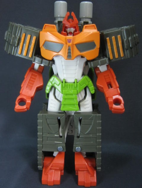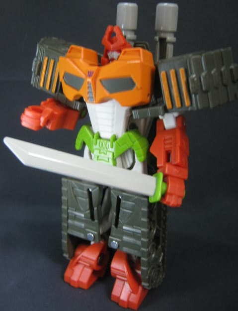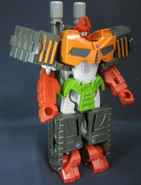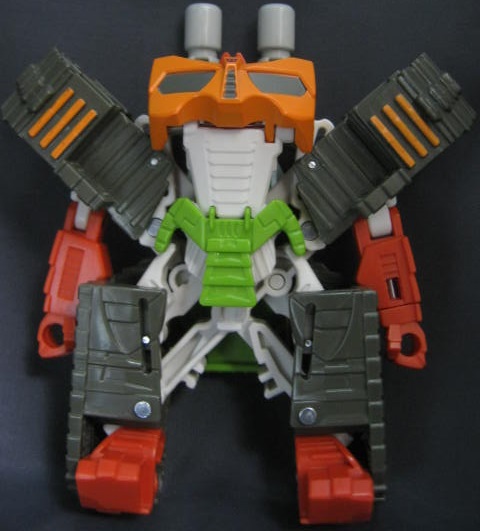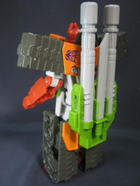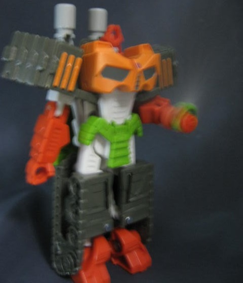 ブラストウェーブのリカラーなのですが、そのブラストウェーブがブラジオンをベースにした外見な上に、G1のアウターシェルの外見に近かったり胸のデザインなどからリベンジ版を意識していたりと少しややこしいですが。