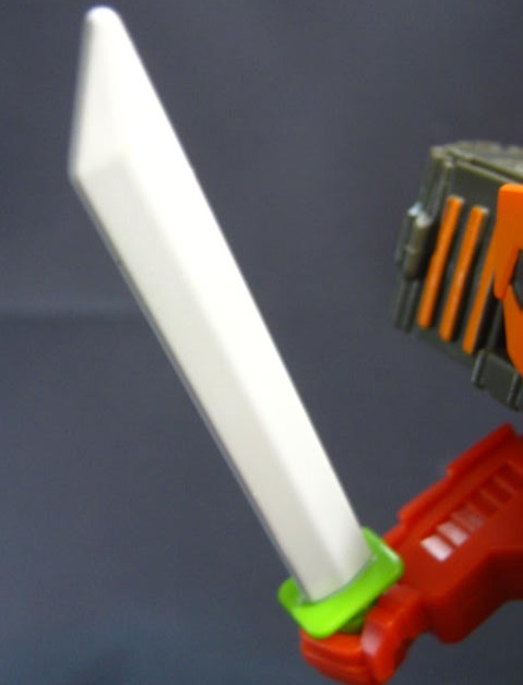 武器として刀が付属。大型商品や限定商品などを除けば、ワンステップ系商品で5ミリジョイントの武器が付属するのは恐らく初めて。余剰にならないのも嬉しい。