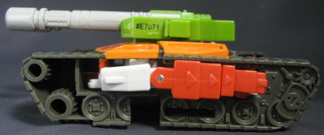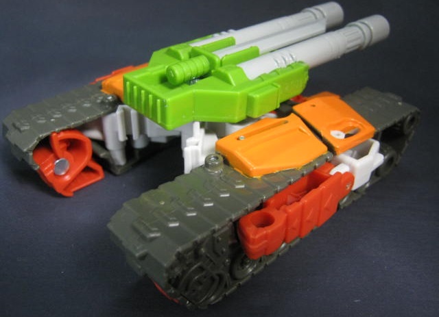 ビークルモード主砲が2つある連装砲仕様の戦車に変形。