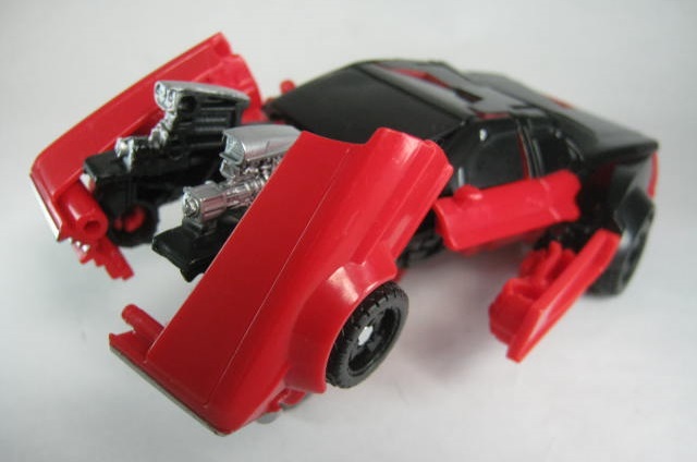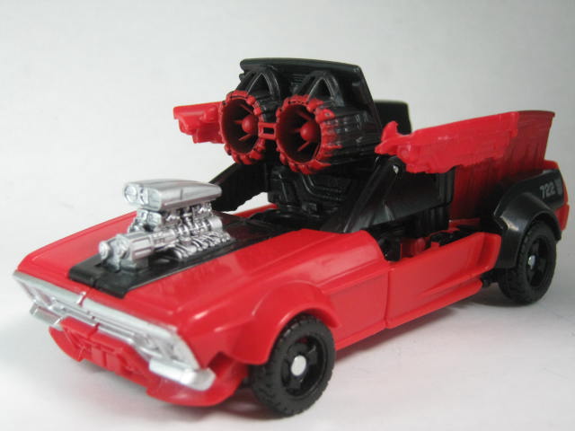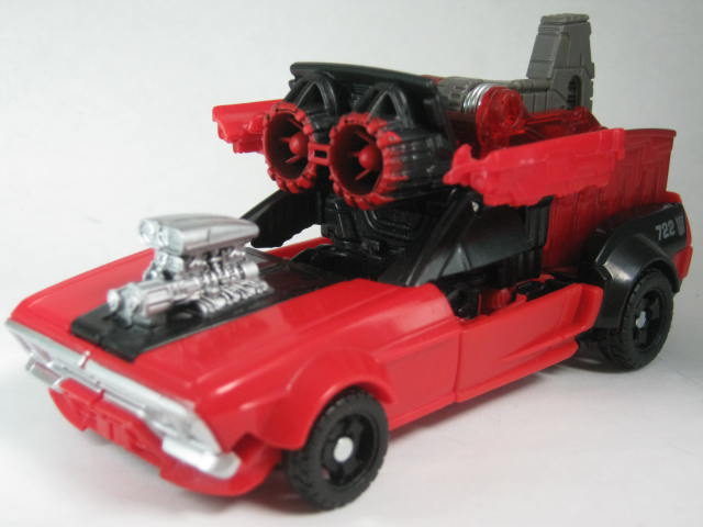 ビークルモード赤いマッスルカーに変形。前に発売していた