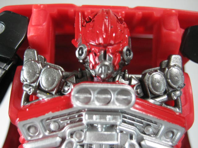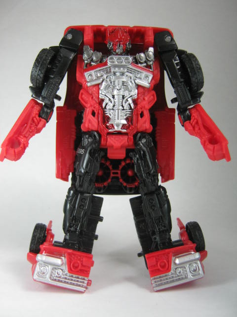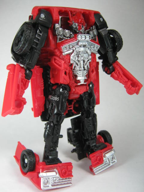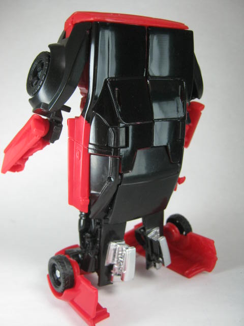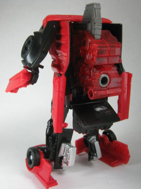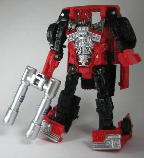 ロボットモード変形工程が少ないので、基本的には立てた車そのままって感じはやや拭えませんが、実写玩具でここまで箱っぽい体系は珍しいかと。脚が細かったりしてややアンバランス感は否めません。シャッターは女性のディセプティコンなのですが、女性っぽさを微塵も感じられないのはリデコとは言えちょっと寂しい。ボンネットがそのまま足の裏に来る関係上、やや設置性が悪く、ちょっと倒れやすい。ちなみに説明書によるとギミック用パネルは展開しないで変形させる様ですが、実際はやや干渉するので展開させた方が良さそう?