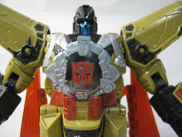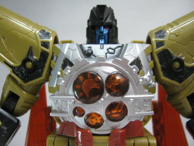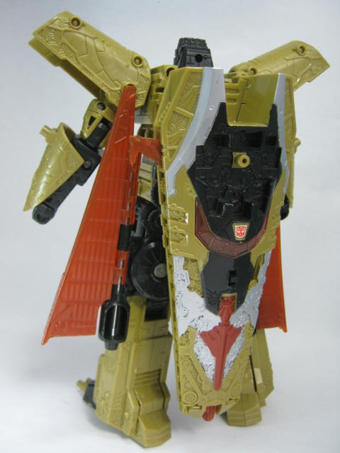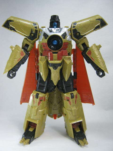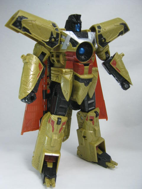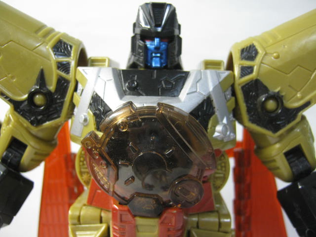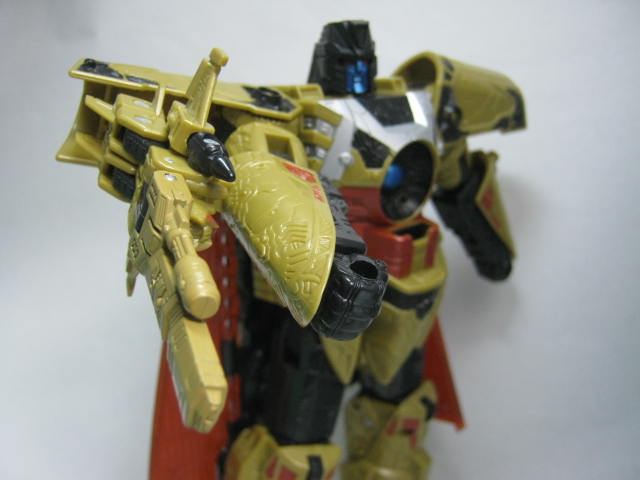 最初の13人のTF(13プライム)なのもあってか、同シリーズのTFと比べると異質な雰囲気。金と言っても黄土色なのと黒のおかげで意外と落ち着いたカラーリング。ちなみにこのベクタープライムは13プライムで一番最初に玩具化された型でもあります。